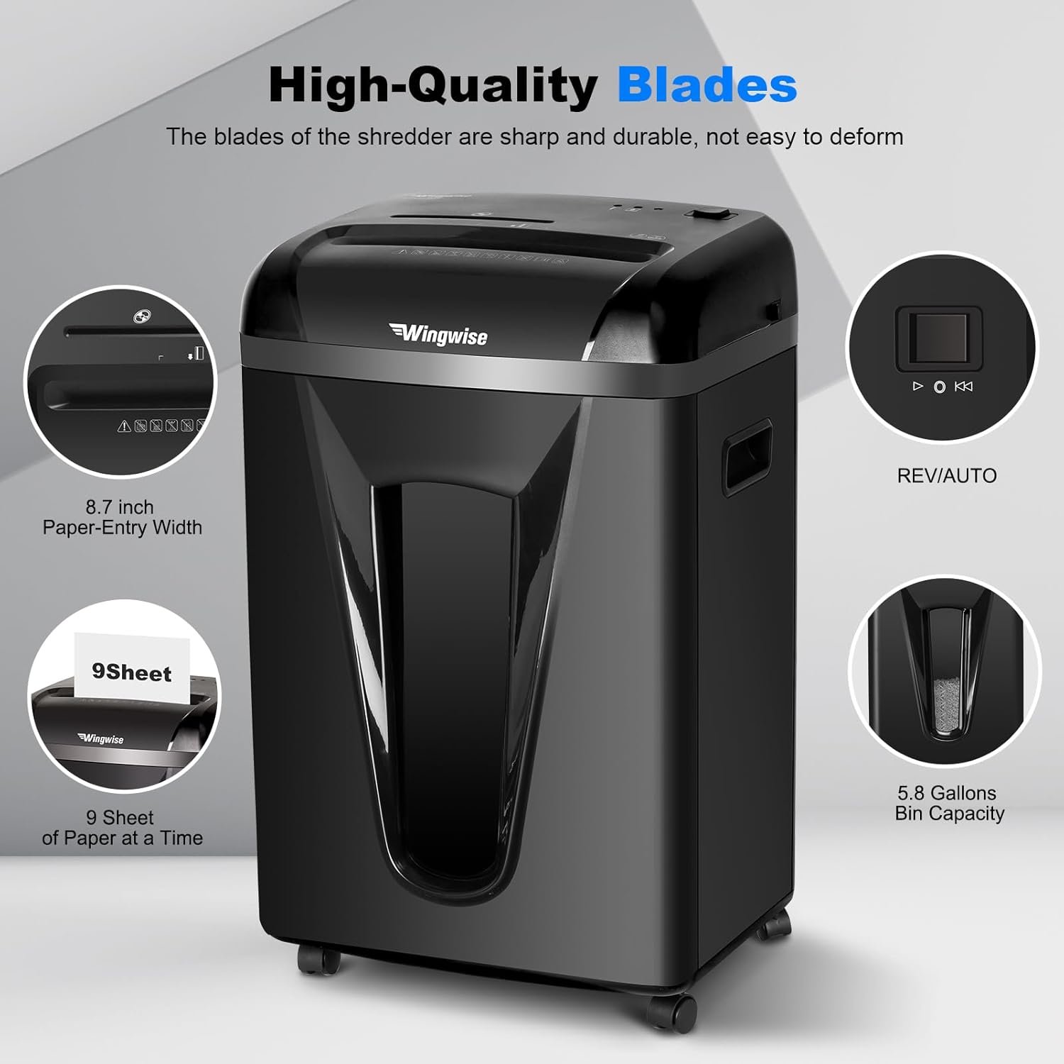 【5.8-Gallon Visual Capacity Bin】 Transparent 386+ sheet bin with full-view window minimizes interruptions—shred 430+ pages before emptying (based on 9-sheet shreds).