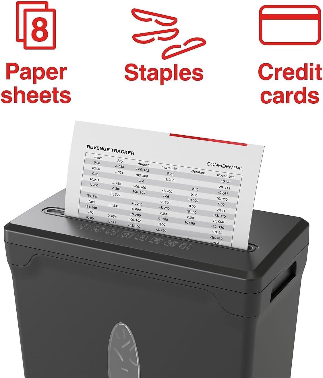 8-SHEET CROSS-CUT: Our cross-cut shredders reduce materials down to 5mm x 40mm particles, achieving P-3 level rating security for sensitive financial, personal, and confidential information (more secure than strip-cut)