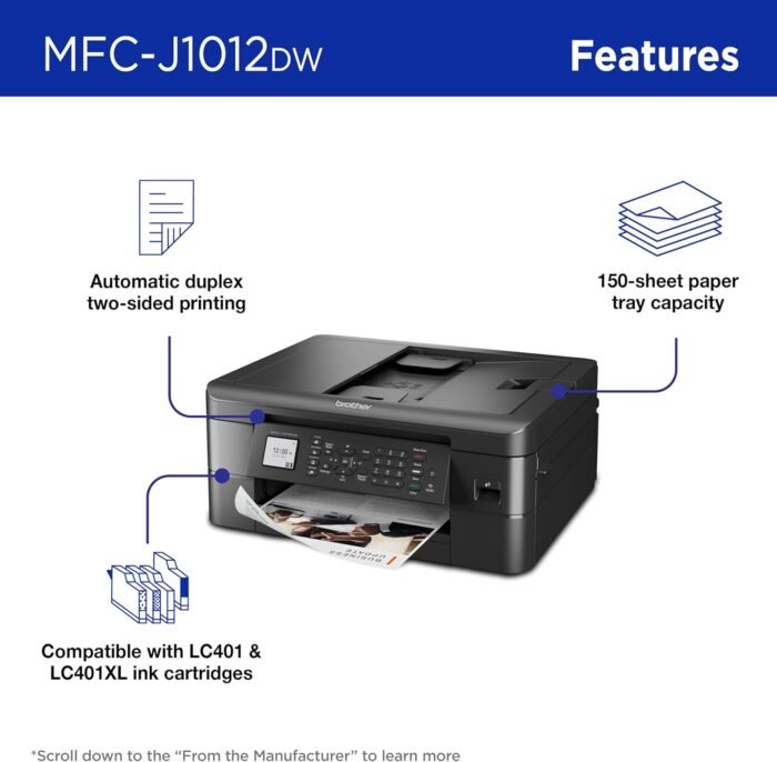 Iām so glad I picked the Brother MFC-J1012DW Wireless Inkjet Printer as my first printer. I needed something ādummy-friendly,ā and this one really is plug-and-play. Setup was fast, Wi-Fi connected easily, and the app makes printing from my laptop or phone a breeze.I only use it a few times a week for shipping labels or documents (mostly black & white), and it prints super clean. Duplex printing is a nice bonus, too. The scanner is just as easy, even my 8-year-old even scanned a paper on his own!Itās compact, reliable, and doesnāt make me fight with it. If you want a stress-free printer that just works, this is it.