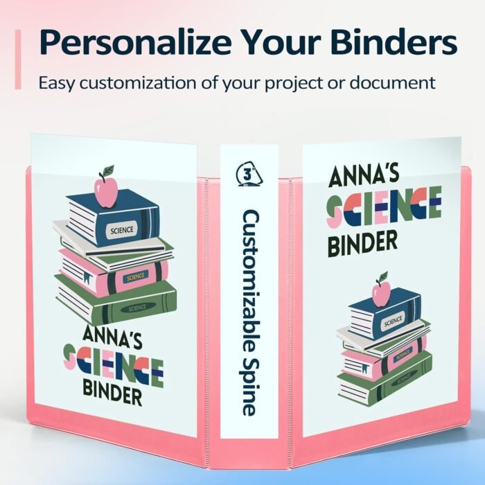 8 reviews for Sooez BinderX Extra Durable 3 Inch 3 Ring Binder, D-Ring Large Binder, Holds 670 Sheets of 8.5×11 Paper, Customizable View Cover with Inside Pocket, Heavy Duty 3 Ring Binder for School, Pink
