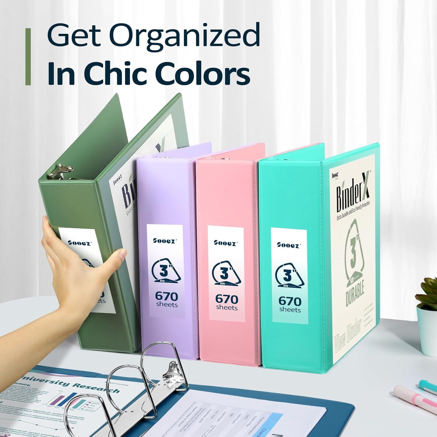 Home Shop Office Products Office & School Supplies Binders & Binding Systems Binders D-Ring Binders,Office Products Sooez BinderX Extra Durable 3 Inch 3 Ring Binder, D-Ring Large Binder, Holds 670 Sheets of 8.5×11 Paper, Customizable View Cover with Inside Pocket, Heavy Duty 3 Ring Binder for School, Pink