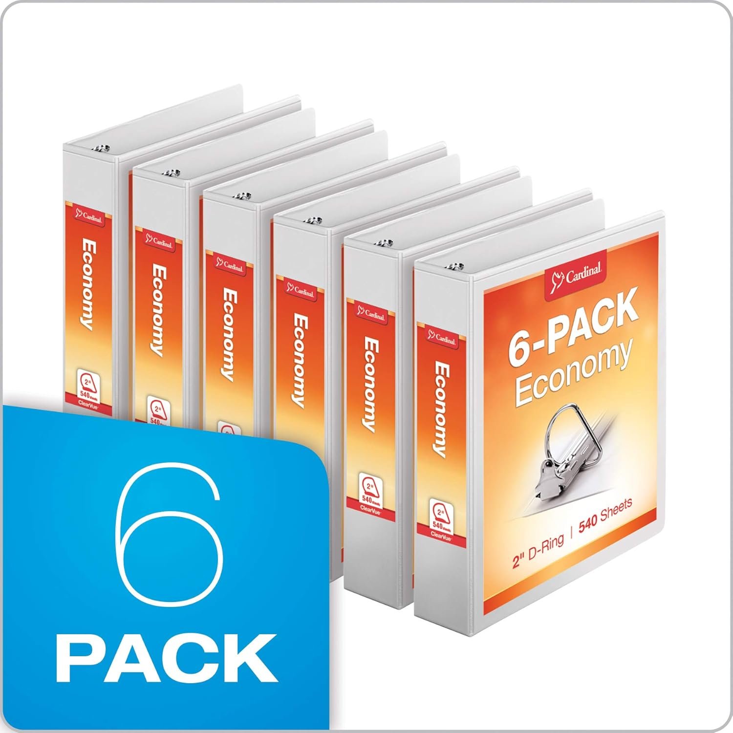 Save by the case; get 6 white 2-inch Cardinal 3-Ring Binders with durable Slant-D rings that hold 25% more than round-ring binders