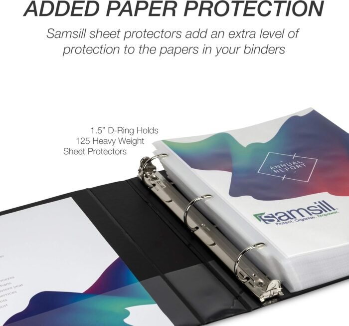 Heavy-Duty Design: This Samsill 1.5-inch 3-ring D-ring binder features a robust D-ring construction that provides tear-resistant storage for heavy loads. Ideal for school supplies, office filing systems, and home document organization, it holds papers securely without bending or slipping, making it a reliable choice for daily use