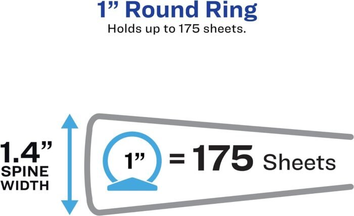 Keep your busy life on track and your paperwork organized like a pro with an Avery Economy Binder. The sturdy, lightweight construction ensures that the 3 ring 1 inch binder is up for light, general use and is perfect for students, offices, and personal organization. Show off your class notes, employee handbooks and other important papers in a lower cost binder that provides a high-quality look and feel. The binder’s deep texture film offers a smooth finish and linen-like pattern for a more professional touch. The back-mounted round rings will keep your pages lying flat and easy to turn. Ensure your important documents stay neat and clean with the nonstick PVC-free material that wonāt lift or transfer ink. Each 1 inch binder can hold up to 175 sheets of 8.5ā x 11ā paper, sheet protectors and dividers. Store loose sheets within the two interior pockets on the front and back covers of the binder. Personalize your black 3 ring binder and make the contents easy to identify at a glance by using the clear ID label holder on the spine. Customizing your binder is easy when you use the free designs and templates on the Avery website. Great for use as a portfolio binder, notebook binder, binder for kids, budgeting binder, recipe binder and more.