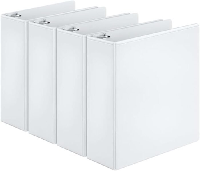 Stock up on a bulk pack of 4 white binders; each 3 inch binder holds 625 sheets; great at-home space savers for schoolwork, documents, binder dividers, a 3 hole punch pencil pouch and more