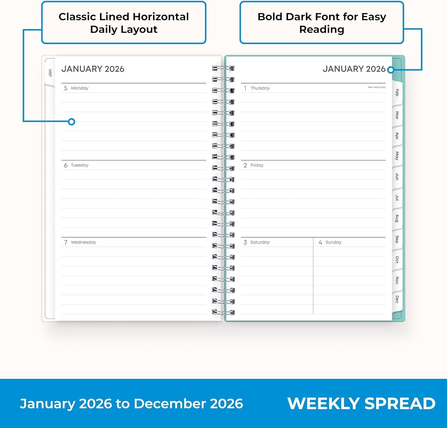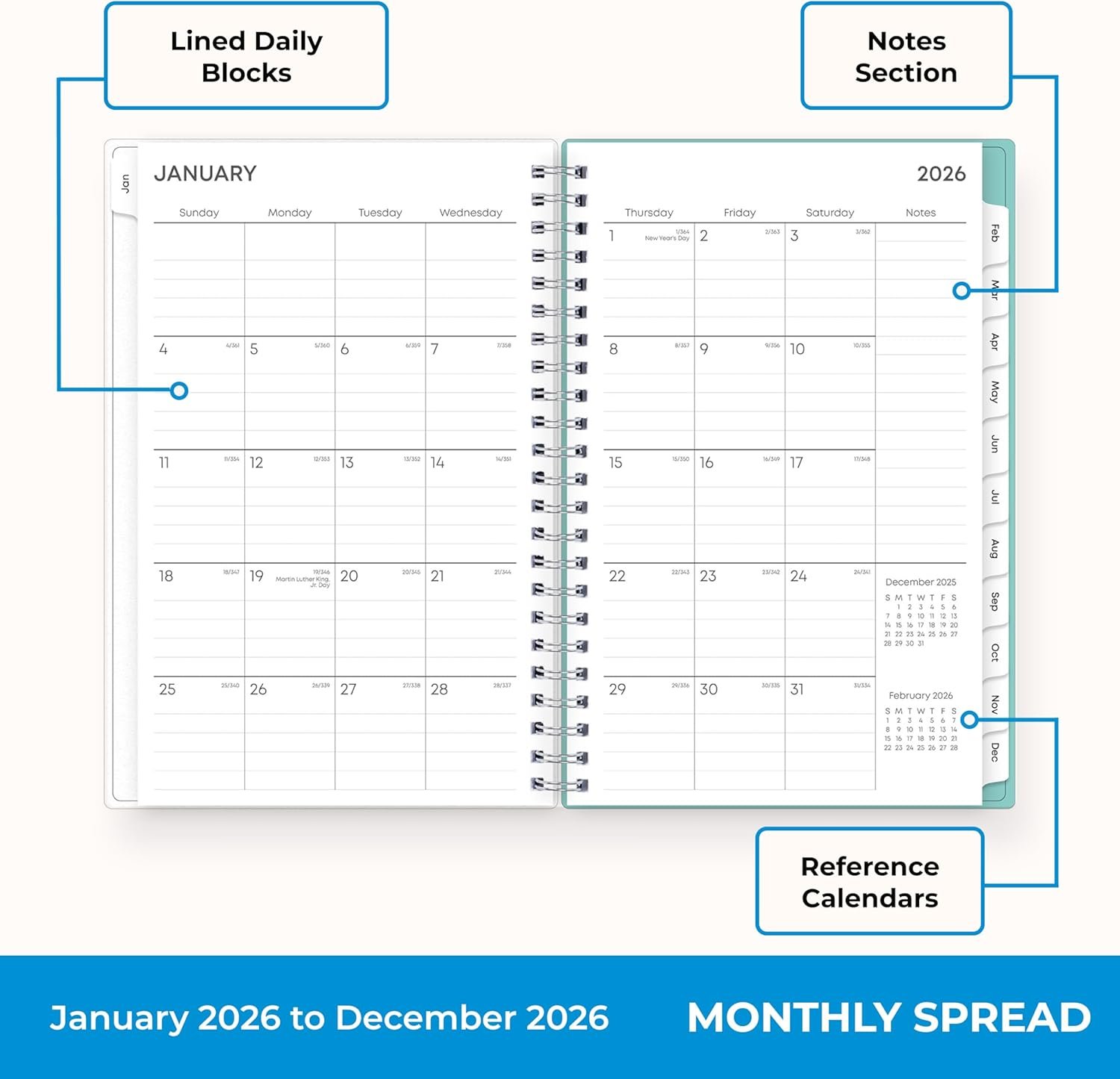 [STAY ORGANIZED ALL YEAR] January 2026 – December 2026 planner with 12 months of monthly and weekly pages for easy year-round planning and scheduling; 6 additional monthly pages (July 2025 – December 2025) are included