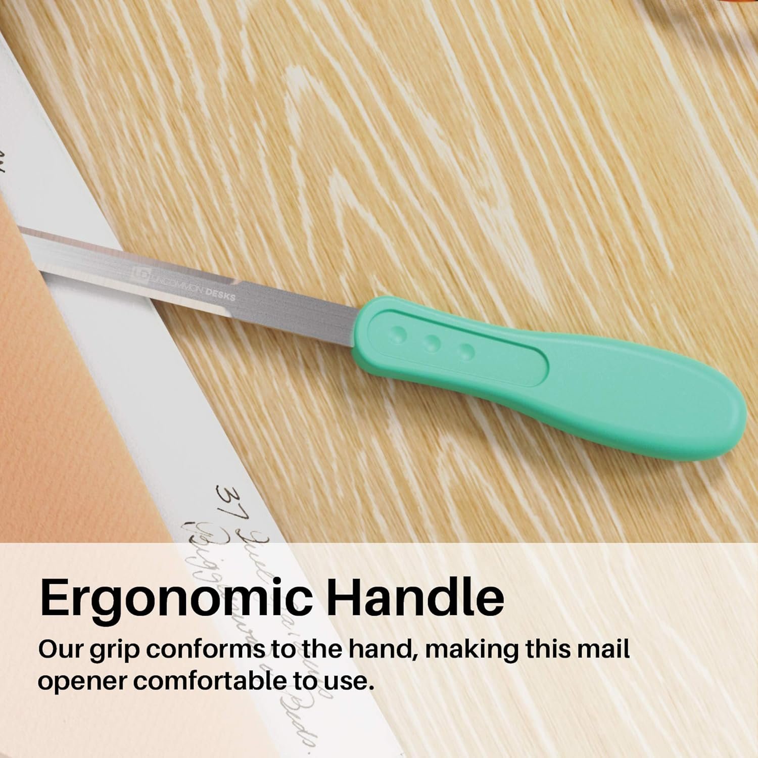 PACKAGE INCLUDES: 1-Piece Letter Opener Envelope Slitter Set . Color: Mint Green. These letter openers are guaranteed to be the coveted jewel of all your office supplies.