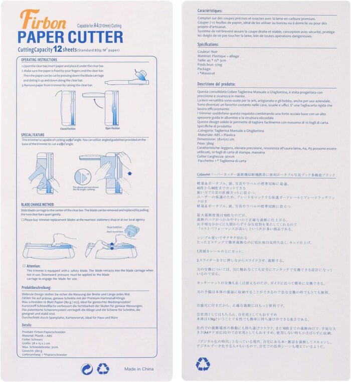 SKU: B075NYWF5P Categories: Accessories, Cutting & Measuring Devices, Office & School Supplies, Office Products, Paper Trimmers & Blades, Rotary Trimmers, Rotary Trimmers,Office Products Brand: Firbon