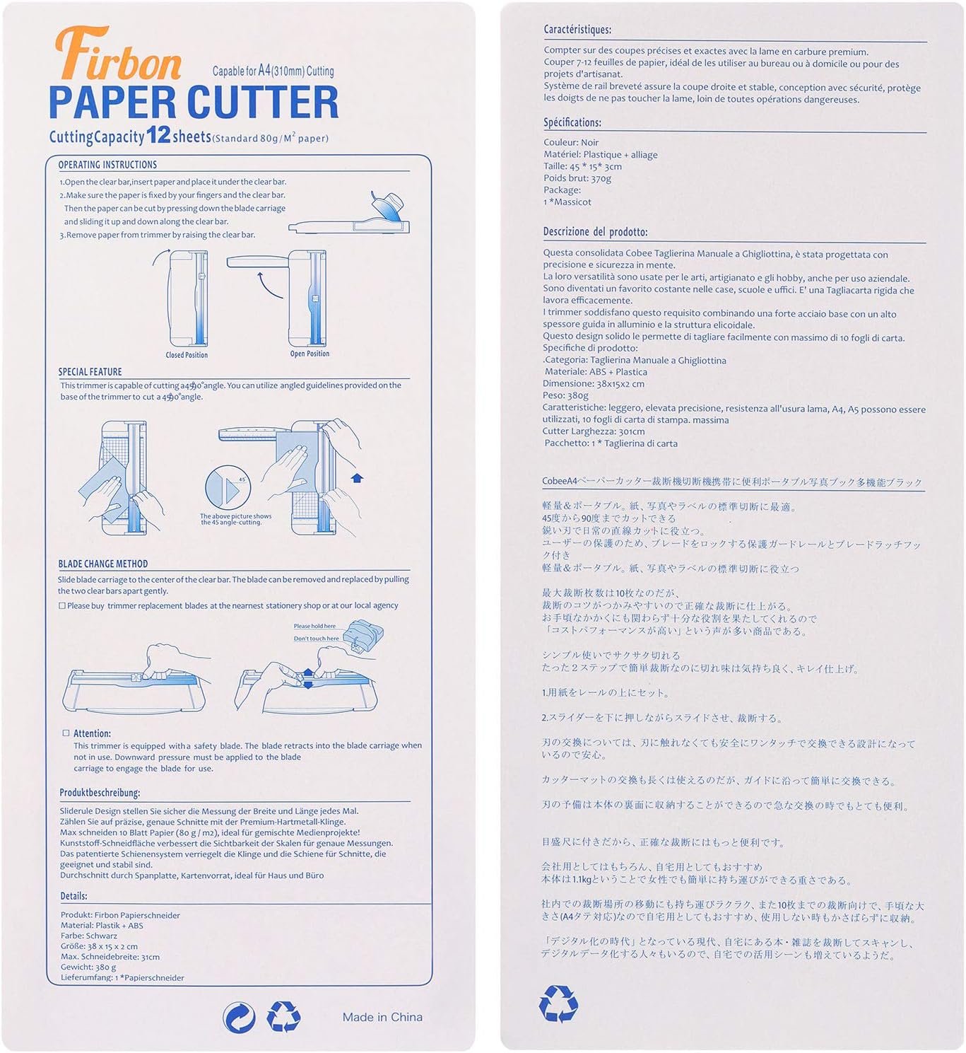 Home Shop Office Products Office & School Supplies Cutting & Measuring Devices Paper Trimmers & Blades Rotary Trimmers,Office Products Firbon A4 Paper Cutter 12 Inch Titanium Paper Trimmer Scrapbooking Tool with Automatic Security Safeguard and Side Ruler for Craft Paper, Coupon, Label and Cardstock (Black)