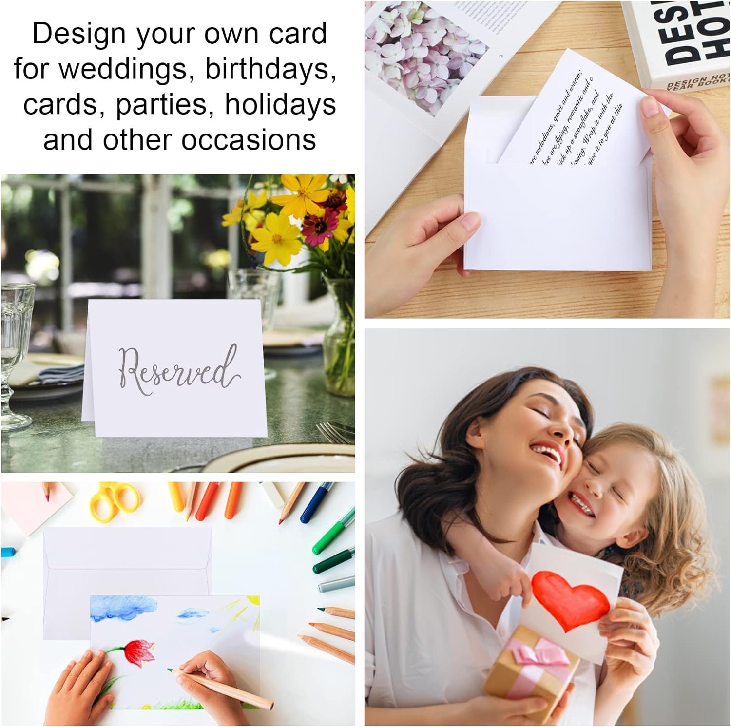 Multi-purpose: Cardstock with Envelopes can be made into office stationery, holiday cards, birthday cards, wedding cards, party cards, gift cards, thank you cards, Christmas cards, invitations, etc., Blank cards, and envelopes are suitable for all scenarios. Many children like to DIY their own favorite cards and envelopes. Children love to make and receive such emotional cards.