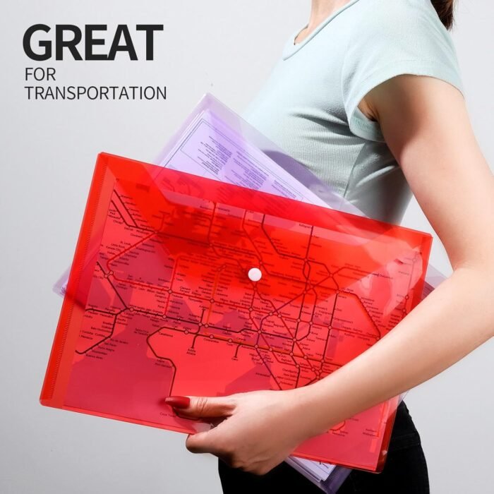 Use-friendly Plastic Envelopes: Total 12 pcs plastic file folders, all with snap closure, easy to open and close. Sealed nicely on both sides and use-friendly snap closure, well prevent documents from falling out. (Note: Any problems, please donāt hesitate to let us know, weāll be at your service with heart and soul.)