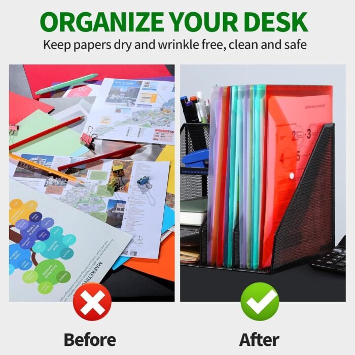 Versatile Plastic Folders: 12.76ā x 9.15ā plastic envelopes, can be filled with paper or little things, keep things in order, reduce mess, bring comfortable feeling; well protect against water, scratch, friction, dust, etc., keep things in good condition, away from curling up, damage, smear, loss etc..
