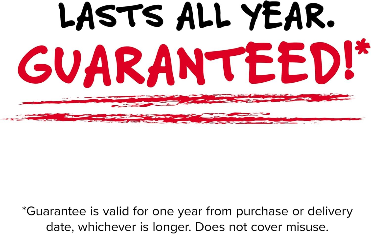 LASTS ALL YEAR. GUARANTEED! Guarantee is valid for one year from purchase or delivery date, whichever is longer. Does not cover misuse.
