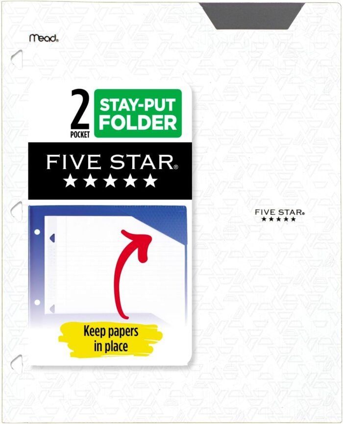 9 reviews for Five Star 2-Pocket Folder, Plastic Folder with Stay-Put Tabs, Fits 3-Ring Binder, Holds 8-1/2″ x 11″ Paper, White (333420I-ECM)