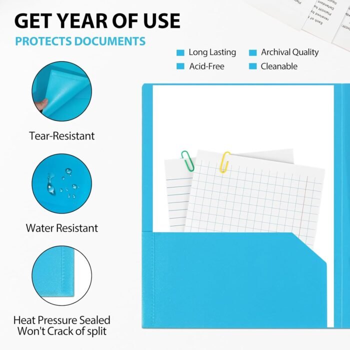 [DURABLE MATERIAL] – Made from heavy-duty polyethylene plastic, these plastic folders offer reliable resistance to tearing, bending, and water exposure.