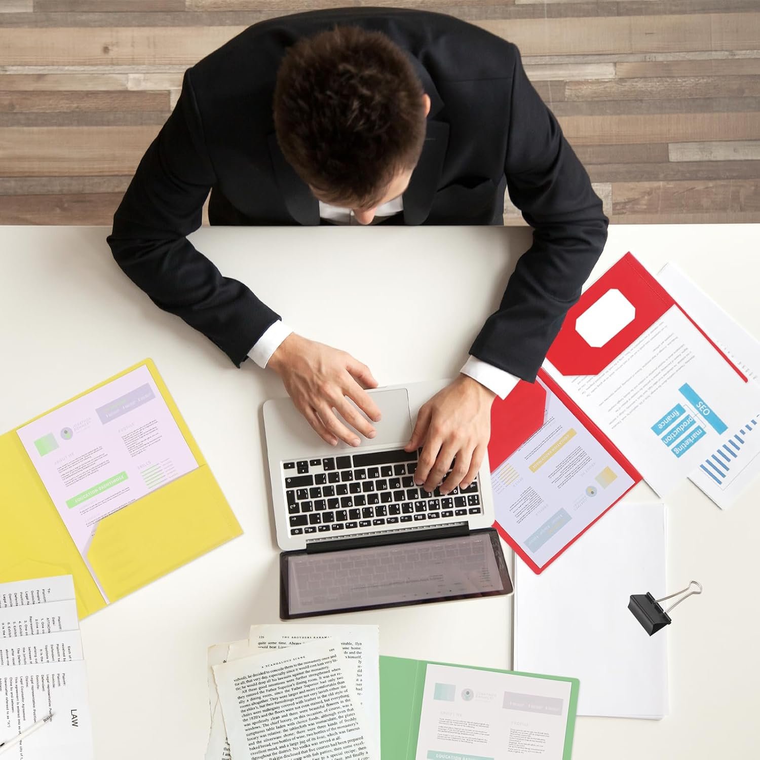 [COLORED FOLDERS WITH POCKETS] -ROZZBY’s folders have 6 vibrant colors (Red, Blue, Yellow, Green, Purple, Black) meets your back to school and office organization needs. Different colored folders for instant file finding,make staying tidy a breeze.