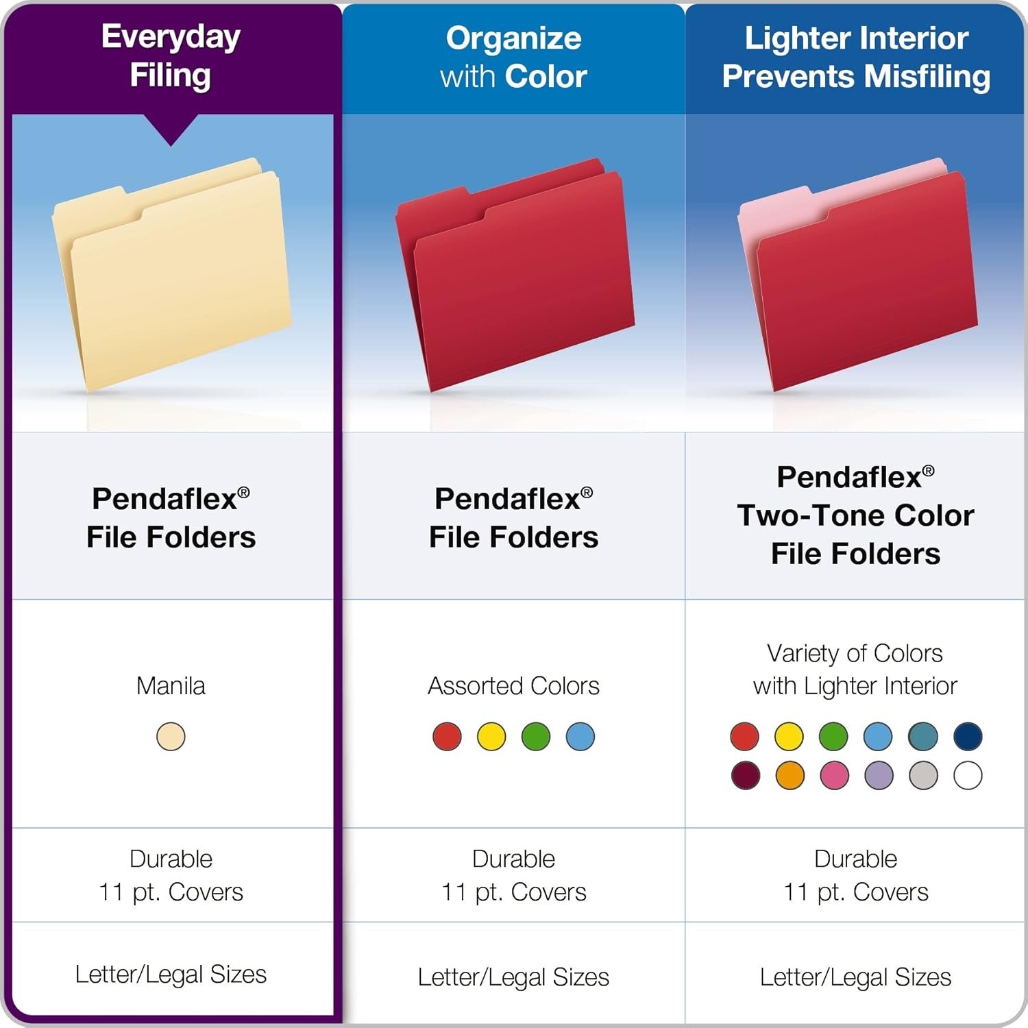 Pendaflex File Folders are perfect for everyday filing needs. Our standard Manila folders stand up to the daily grind. Letter size, straight-cut tabs. 100 per box.
