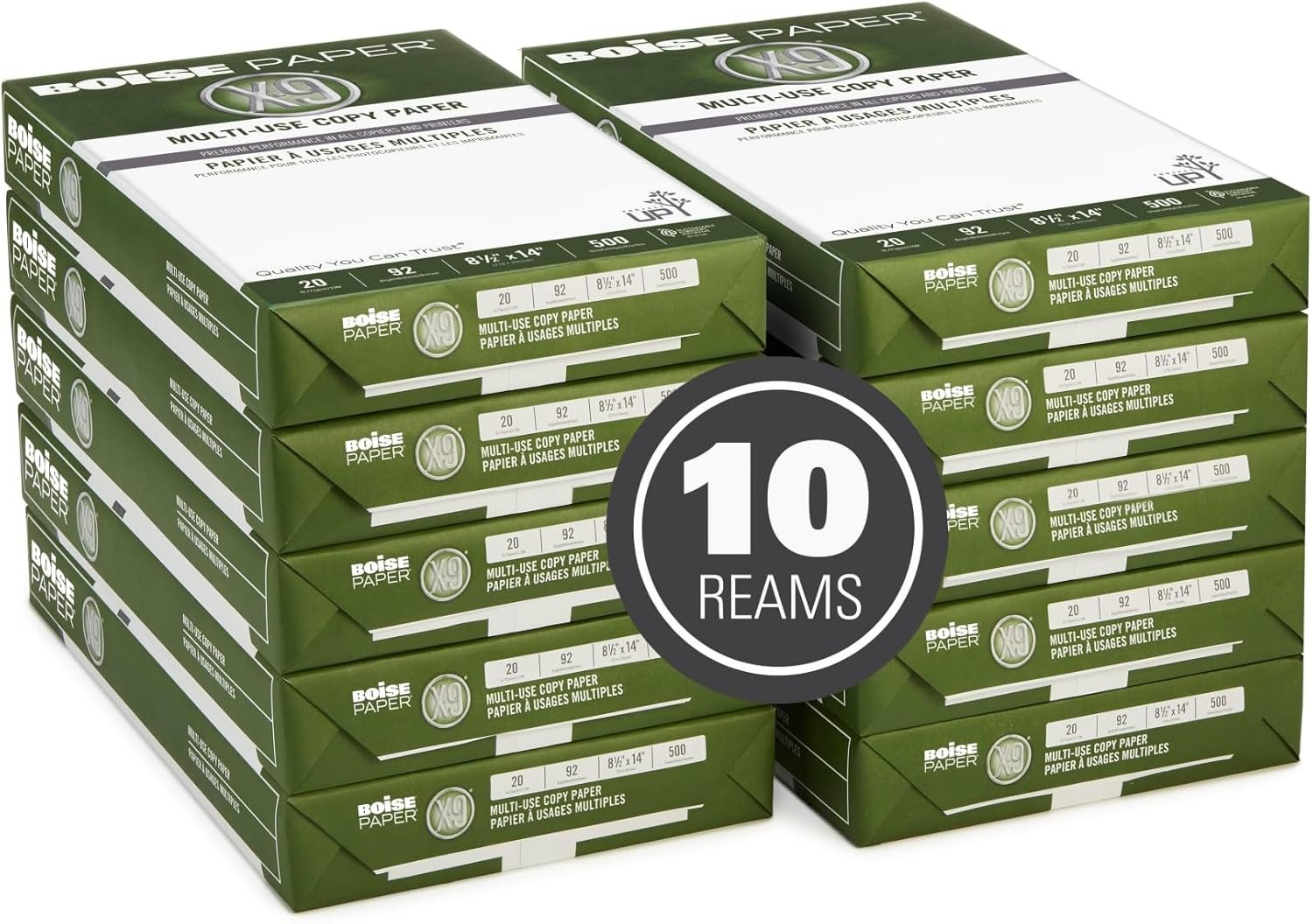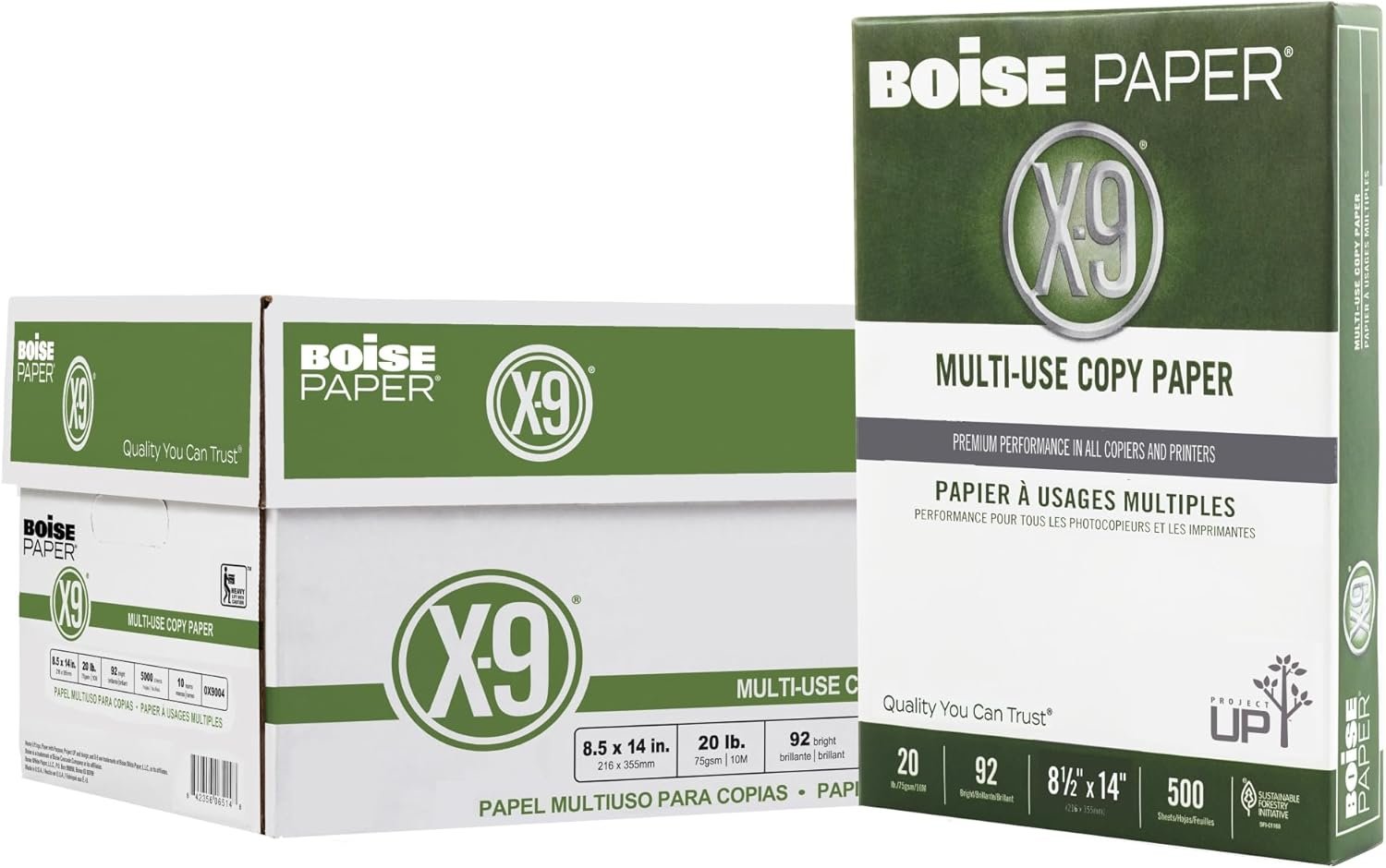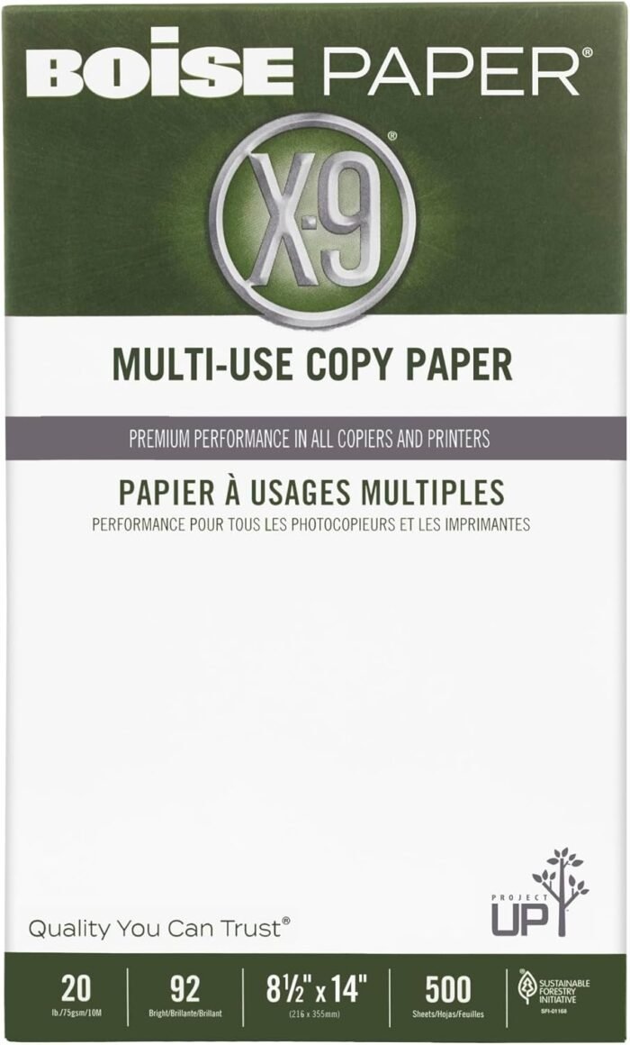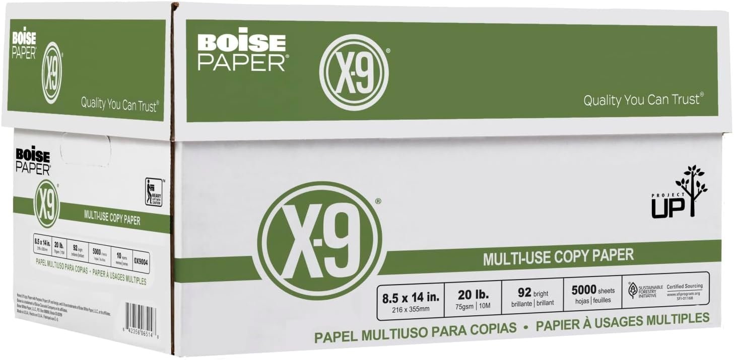 Help projects go smoothly with Boise X-9 multi-use copy paper. Perfect for everyday copying and printing, this multi-use copy paper offers consistent performance and high runnability, so you can worry less about printer jams and downtime. Keep spare paper on hand so you never run out in the middle of a job. Ideal for high-volume print jobs when speed matters. 20-lb. paper weight works well in copiers and printers. Provides 99.99% Jam-Free performance. 92 brightness, acid-free paper won’t yellow or fade over time. Eco-conscious choice – has one or more meaningful eco-attributes or eco-labels.