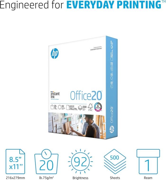 HP Papers | 8.5×11 Paper |Office 20 lb | 1 Ream – 500 Sheets | 92 Bright | Made in USA – FSC Certified | 112150R | ⭐ Art Stationers Best Choice