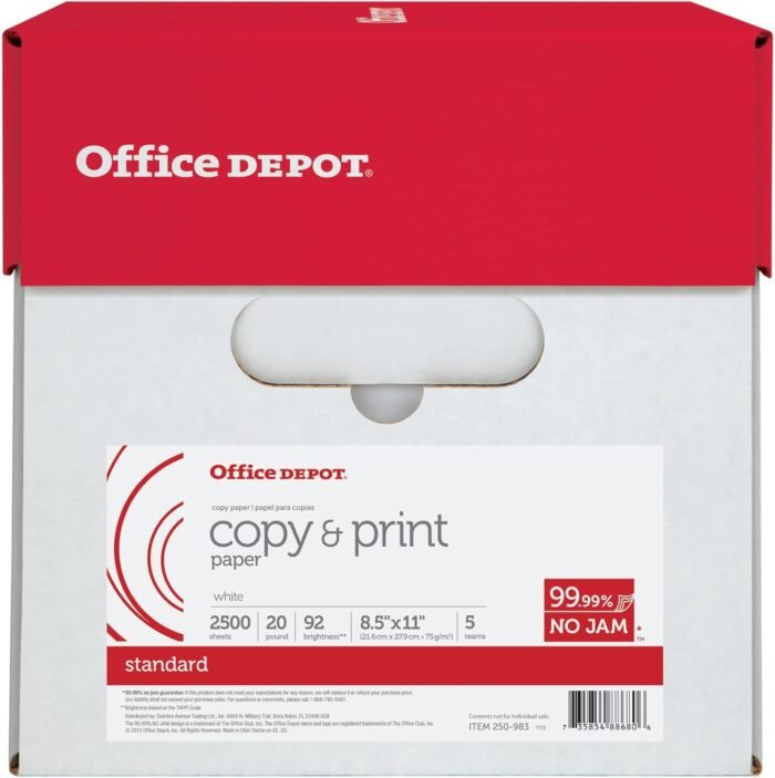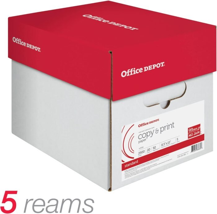 Office Depot Copy Print Paper, 8 1/2in. x 11in., 20 Lb, 500 Sheets Per Ream, Case Of 5 Reams, 851201CS | ⭐ Art Stationers Best Choice