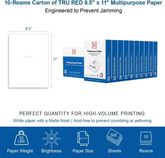 Vivid Color Printing: TRU RED printer paper is available in a brightness rating of 96. Enjoy excellent print quality for vibrant text and images.