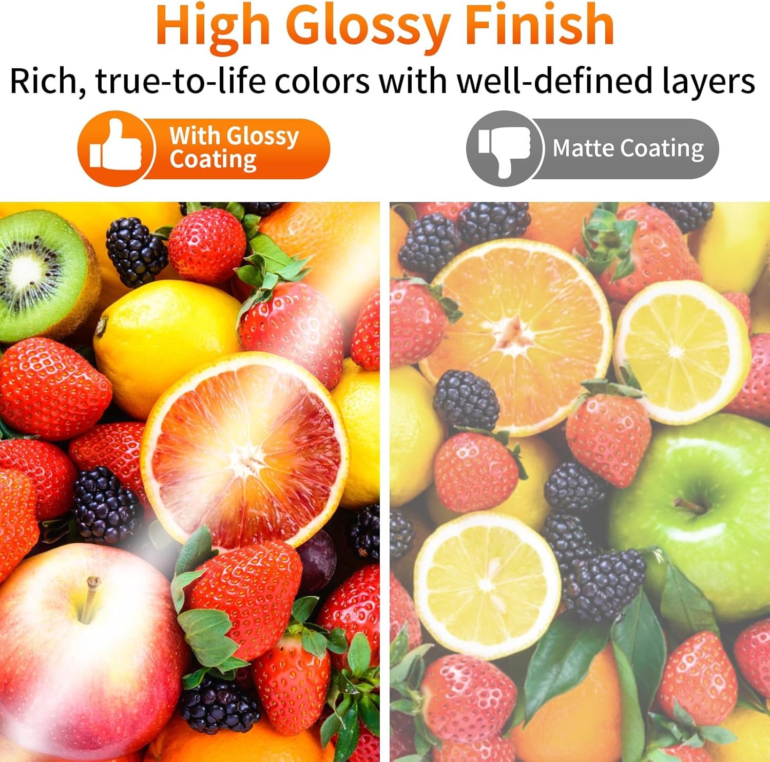 Glossy Finish: Our glossy photo paper features its a reflective finish, that resists fingerprints and almost eliminates glare, makes every picture more professional and attractive look like a work of art