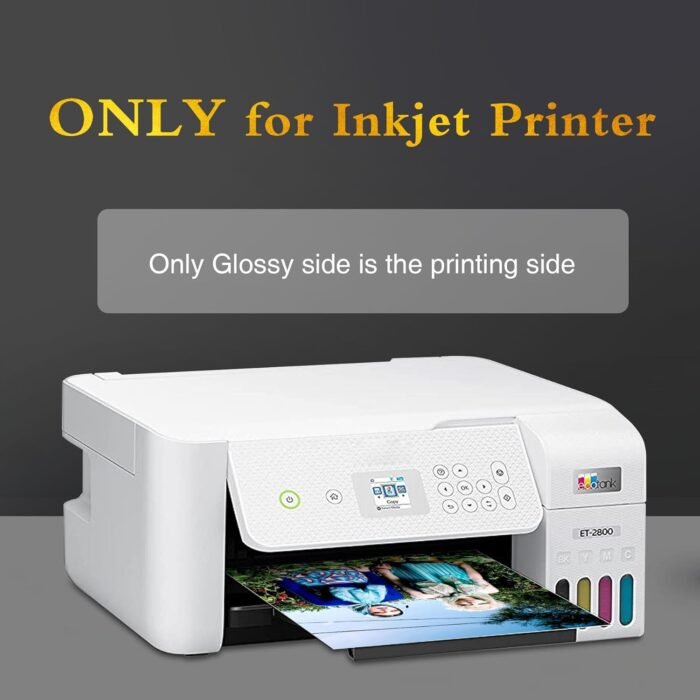 PLEASE NOTE THAT: Only compatible with INKJET PRINTER. SINGLE SIDED PRINTING, Only the Glossy side is the printing side. No watermark on the back, leaving you a blank to record