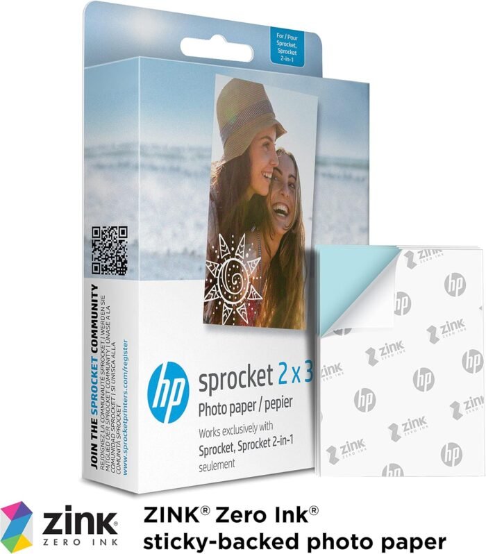 I recently purchased the HP 2×3″ Premium Zink Photo Paper to use with my HP Sprocket Portable Photo Printer, and I’m quite pleased with the results. This photo paper is designed specifically for Zink (Zero Ink) technology, which means you don’t need any ink cartridgesāeverything is embedded within the paper itself.**Print Quality:**The print quality is impressive for such a small and portable printer. The colors are vibrant, and the photos have a nice glossy finish that adds a professional touch. The images are clear with good detail, making them perfect for keepsakes or for sticking into a journal or scrapbook.**Ease of Use:**Loading the paper into the Sprocket printer is a breeze. Just pop open the back of the printer, place the stack of paper inside with the blue calibration sheet at the bottom, and you’re good to go. The printer automatically calibrates with the blue sheet, ensuring accurate color reproduction every time.**Durability:**The adhesive backing is a fantastic feature, allowing you to peel and stick your photos wherever you like. I’ve used them on various surfaces, and they adhere well without leaving any residue when removed. The paper is also smudge-proof and water-resistant, so you don’t have to worry about damaging your prints.**Value for Money:**With 50 sheets in a pack, I find this to be a good value for the price. The convenience of printing high-quality photos on the go without needing ink cartridges makes it worth every penny. Plus, the small 2×3″ size is perfect for portable printing, and itās ideal for sharing physical memories with friends and family.**Final Thoughts:**Overall, I’m very satisfied with the HP 2×3″ Premium Zink Photo Paper. It works perfectly with my HP Sprocket, and the results are consistently great. Whether you’re using it for personal memories, scrapbooking, or creative projects, this photo paper won’t disappoint. I highly recommend it to anyone looking for a reliable and fun way to print photos on the go.