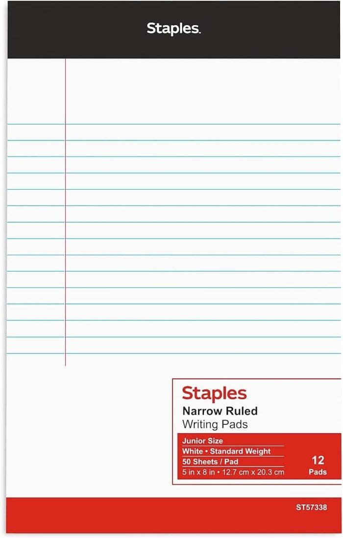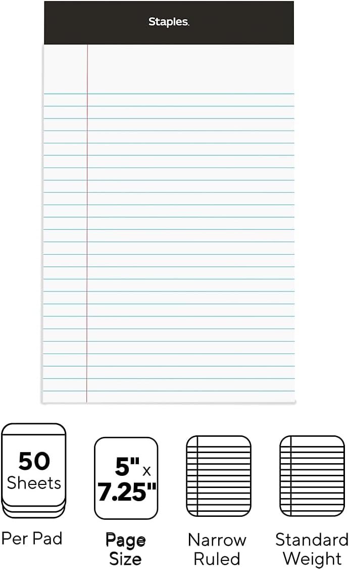 8 reviews for Staples TRU RED Notepads, 5 x 8 Inch, Narrow Ruled Legal Pads, Writing Pad for Home, Office, School, 12-Pack, White