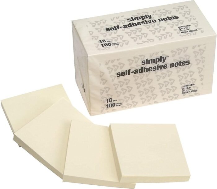654918PK Features: -Pad type: Pad. -Ruling: Plain. -Shape: Square. -18 Pack. -Made in United States. -Color(s): Yellow. Quantity: -18-Pack. Size (W X H): -3″ x 3″. Color: -Yellow. Sheets Per Pad: -100. Dispenser Type: -Pad. Ruling: -Plain. Country of Manufacture: -United States. Dimensions: -Sheet: 3” H x 3” W. Overall Height – Top to Bottom: -3.6″. Overall Width – Side to Side: -6.1″. Pad Thickness: -3.1″. Overall Product Weight: -1.71 lbs.