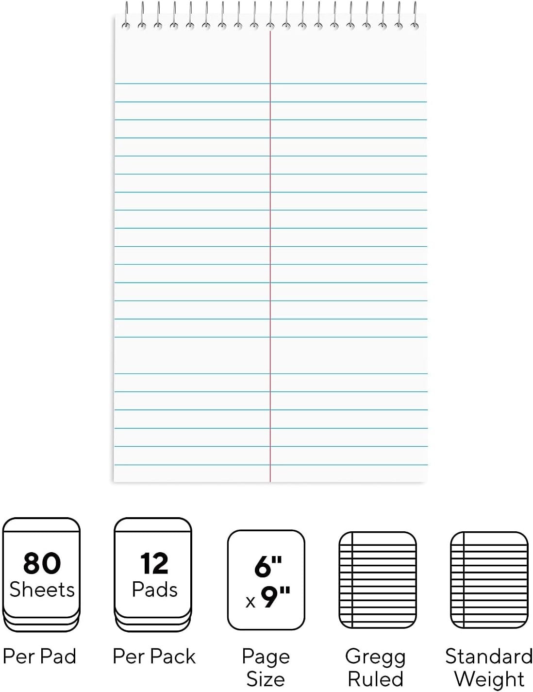 GREGG RULED, 6 x 9 SHEETS: Each notepad contains 80 sheets of Gregg ruled, white paper (11/32 inch line spacing), ensuring you will have plenty of space for your thoughts and writing projects