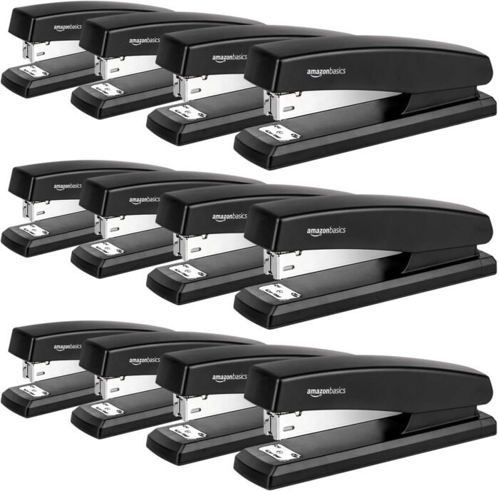 Amazon Basics 25-Sheet Capacity, Non-Slip, Office Stapler with 1000 Staples, Black – Pack of 12