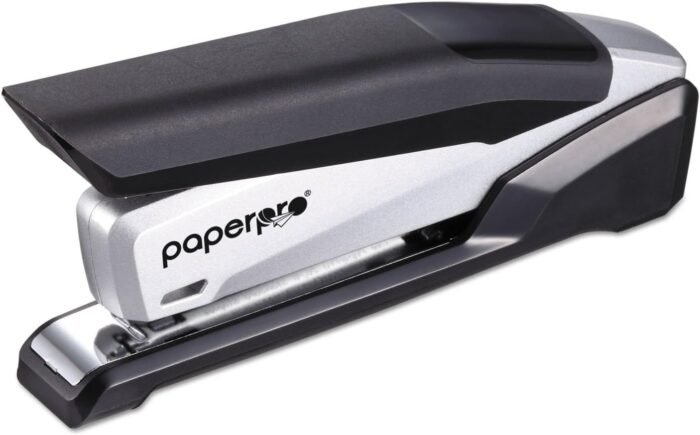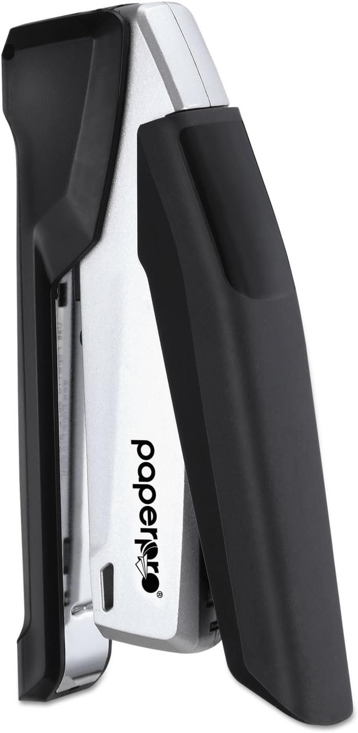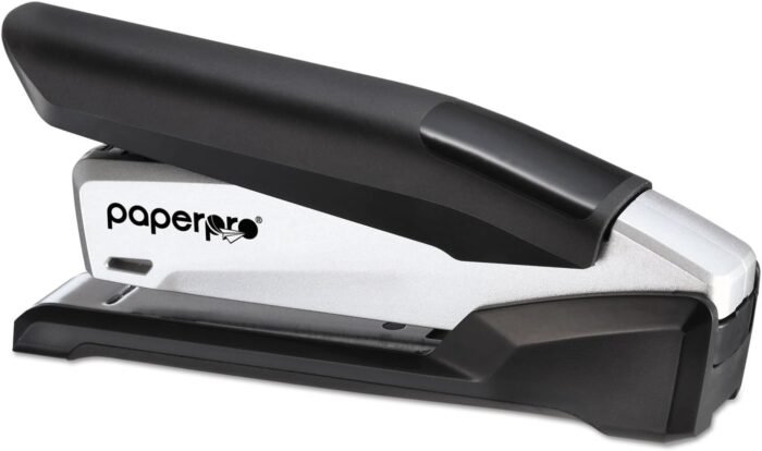 With One-FingerTM technology, make stapling 80% easier — just the push of a finger staples up to 28 sheets. Cleverly integrated into the stapler is a staple remover for quick fixes, and a staple-storage compartment in the base keeps two full strips of staples close by for immediate reloading. Sleek, die-cast metal housing with the handle’s soft, non-slip grip allow for comfortable use whether stapling on a desktop with one finger or whether stapling with it held in the palm of your hand. Smooth, jam-free operation. Opens for bulletin board tacking. Rubberized base for stability and table-top protection. 28 sheet capacity. Full-strip (210) staple capacity. Uses standard staples.