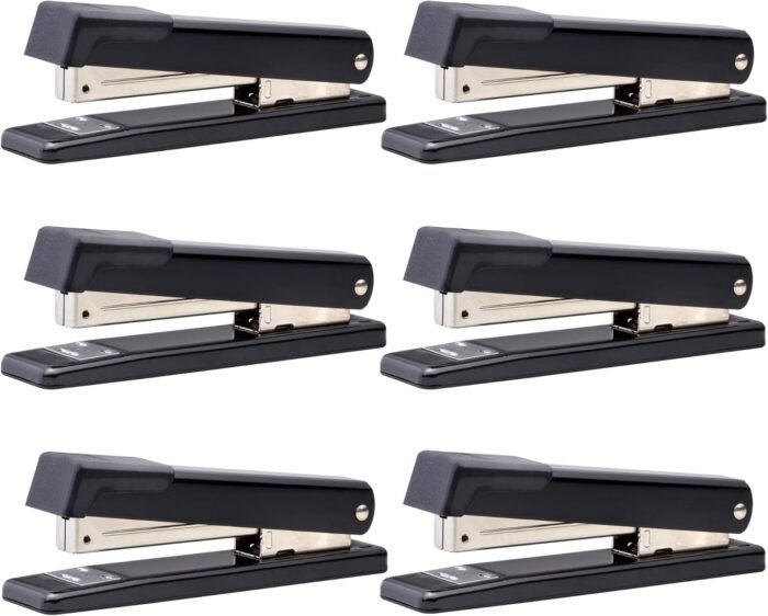 A reliable favorite, this traditional-style metal stapler features a durable all-metal construction for a lifetime of use. Conveniently designed to open for bulletin board tacking, and adjust between temporary or standard stapling. Staples up to 20 sheets of paper. Uses standard staples. Value pack contains 6 staplers.