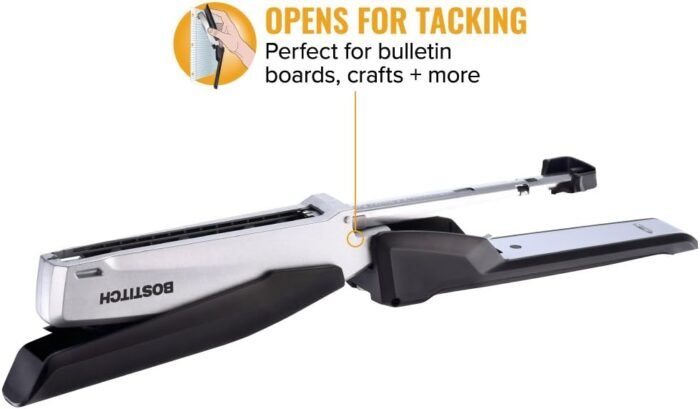 Have you ever used a spring powered stapler? There’s nothing quite like it. This EZ Squeeze stapler fastens stacks of paper up to 28 sheets with ease. In fact, spring powered staplers are 80% easier than standard staplers. Besides easy stapling, this unit has more helpful features to offer. Each model has a built-in staple remover and staple storage compartment. This keeps extra staples close at hand should you ever run out. For tacking and bulletin board use, you can open this stapler to a full 180 degrees. A die-cast metal build provides longevity, while the rubber grip makes it comfortable. Never endure another staple jam – this unit is jam-free! This spring powered stapler also comes with an additional pinch-style staple remover and 5,000 staples! Try spring powered stapling today with Bostitch Office!
