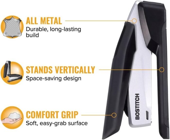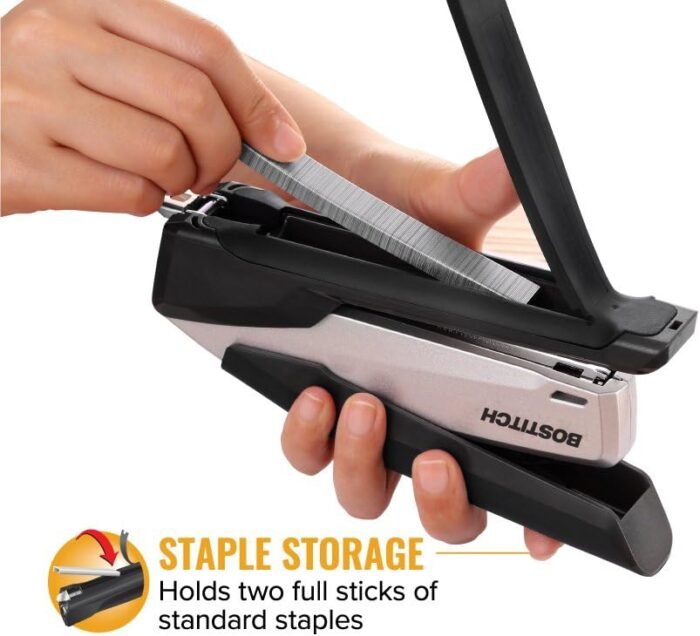 This low effort stapler uses less pressure than my 15 year old PaperPro (that broke).Where the PaperPro was mainly plastic and can break (which mine did after 15 years), this Bostitch is metal and quite sturdy. I anticipate this lasting a LONG time.The other features of storing an extra strip of staples and built in staple remover is nice and useful.Update Sept 6 2023: seems that it broke and now no longer works. Updating to 3 stars cause we only use it as a family of 4 and not in an office environment, it should have lasted longer. Reducing my review to 3 starsUpdate Sept 27 2023: I filled out a warranty form on bostichoffice.com and they sent me a replacement stapler! Upping my review back to 4 stars, good customer service. However, the stapler should have lasted much longer.