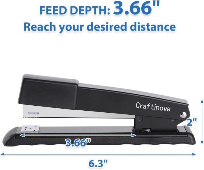 ćMETAL HEAVY STAPLERć – The stapler uses an all-metal body with a smooth and black anti-rust coating. It can be used 10,000 times, and the metal stapler is more durable than ordinary stapler and is not easily damaged.