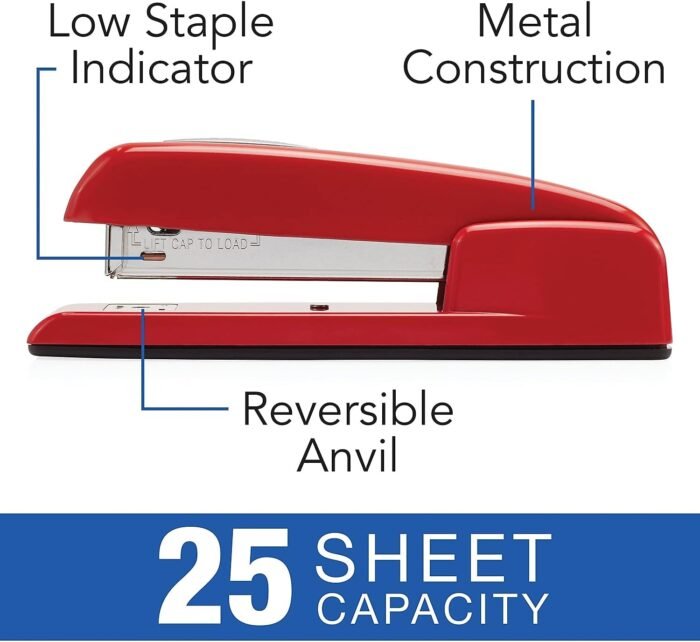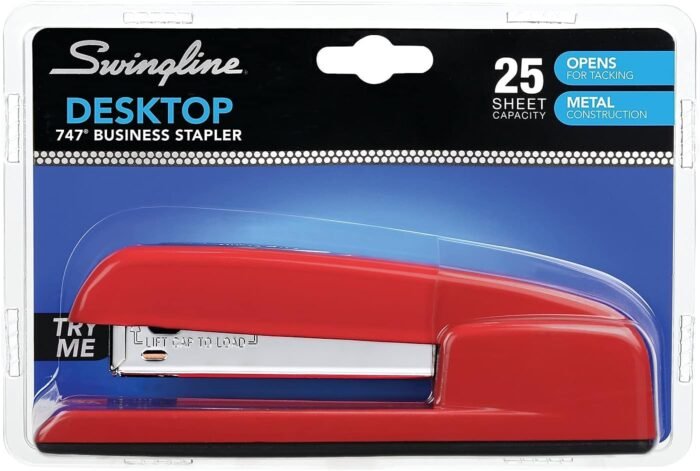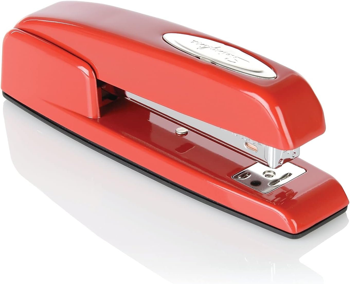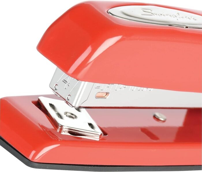 Engineered for increased strength and streamlined for productivity–the industry standard is even better. An updated design brings superior reliability and a contemporary touch to your desktop. All-metal construction–time-tested–for enhanced durability. Smooth new form and finish. Workhorse 747 architecture and features: constructed with top performance in mind (with an inner rail, positive locking latch and more), to minimize jamming, maximize secure staple placement and deliver reliable performance that you can count on. Easily flips open for tacking and has a reversible anvil for pinning. Staples 2-20 sheets of 20 lb. paper. 100% Performance Guarantee when used with Swingline S.F. 4 Premium Staples.