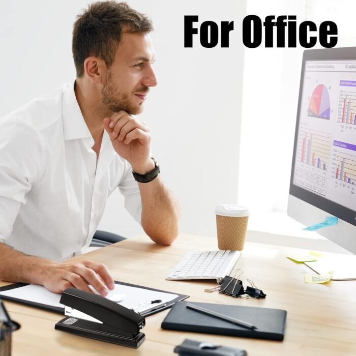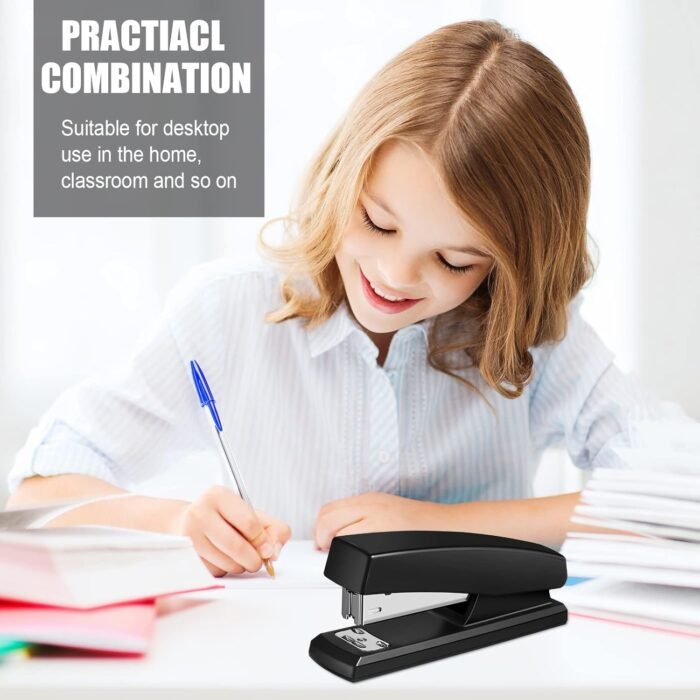Creative Design: the office stapler and staples can provide you with reliable, clog proof and accurate binding, the non slip base can hold the stapler in place during use, providing you with a good use experience