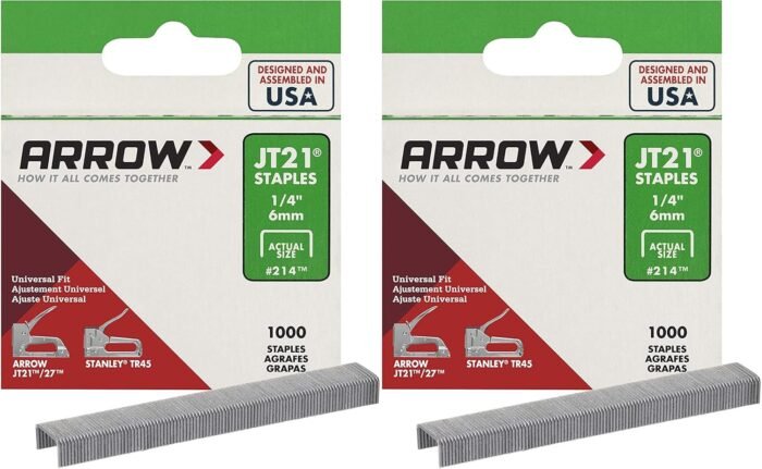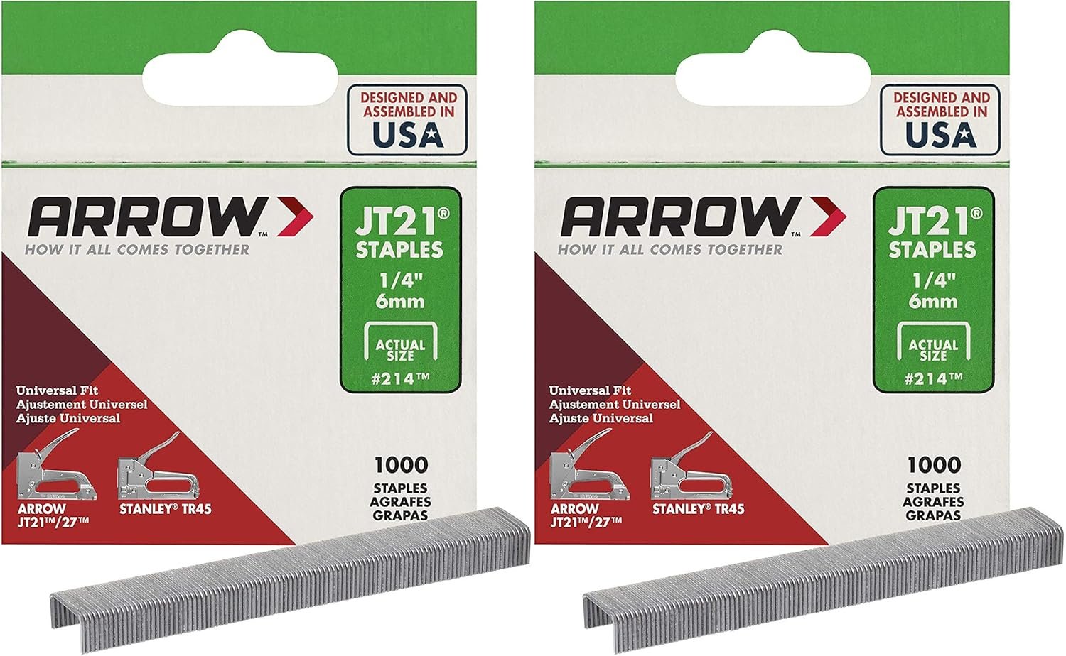Arrow Fastener #214 JT21 7/16 in. W x 1/4 in. L Flat Crown Fine Wire Staples 1000 pk. Pack of 2. JT21 staples are the T50’s little brother. Although often referred to as light duty, thereās really nothing ālightā about them. Built with the same quality and precision as the T50, these staples utilize a thinner wire in a smaller staple format to deliver great holding power. They are exceptionally easy to fire, making JT21 staples a favorite with crafters, women and those with limited grip strength. Used for general home repairs, crafting, art projects and upholstery.