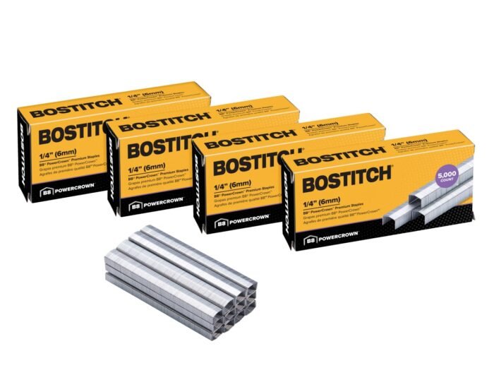 Legendary Bostitch B8 PowerCrown staples are crafted for ultimate drive performance. Taking the physical dynamics of staple driving into consideration led our engineers to develop the unique PowerCrown feature. As this crowned (peaked) staple top is flattened during the staple drive, it forces the staple legs outward so they are more fully supported by the stapler magazine throughout the drive. This delivers more stapling force and reduced buckling for maximum penetration. Each full strip contains 210 staples and is constructed from superior quality high carbon wire to reduce buckling and jamming. The finely honed chisel points deliver maximum penetration for maximum sheet capacity. ¼” leg length. 20,000 count.
