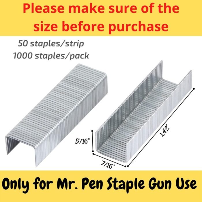 Definitely not for use in a staple gun. I realized after I received this micro box of staples, that these apparently only work on Mr.Pen staple guns. If this is the quality of staples, I definitely don’t want to purchase your staple guns. My standard office staples are bigger and stronger. My staple gun uses various size staples, including the supposed size I ordered, but don’t fit. They were actually so small and thin, I had to dig them out of my staple gun. So not only did I wait over a week to get them (was supposed to be received the next day) but piss poor quality too. Not even worth the hassle of a return/refund. I usually read product reviews before ordering, but I thought “staples”, how difficult could that be ? Never again.