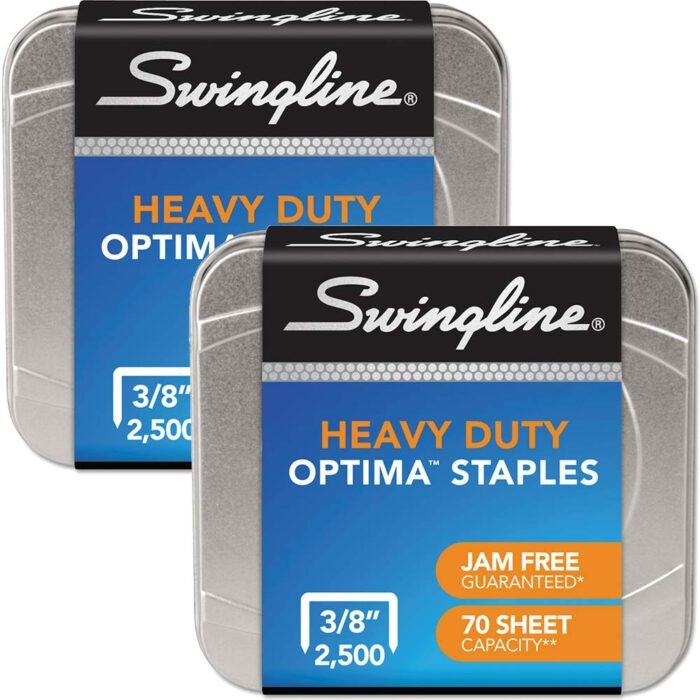 Trust Swingline Optima High Capacity Staples to provide steady, dependable stapling. Supported by a jam-free guarantee, these staples ensure superior quality and service. Designed with precision-engineered chisel points that cleanly pierce paper every time. Strong staples are guaranteed to perform without frustrating jams and interruptions. Longer, 3/8ā legs securely fasten up to 70 sheets of paper, nearly 3 times the holding capacity of standard staples. Each full strip contains 125 staples, for easy continuous stapling without the need to stop for frequent refills. Each reusable storage box contains 5,000 staples, ensuring long-term productivity with fewer run-outs. Includes two boxes. Swingline backs these staples with a jam-free guarantee when used in Optima 60- (ITEM #) and 70-sheet (ITEM #) staplers.
