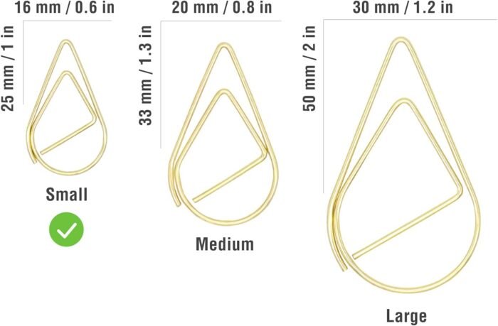 250 pcs drop-shaped paper clips (1*0.6 inch) in durable & reusable box (2.87*2.87*1.18 inch)