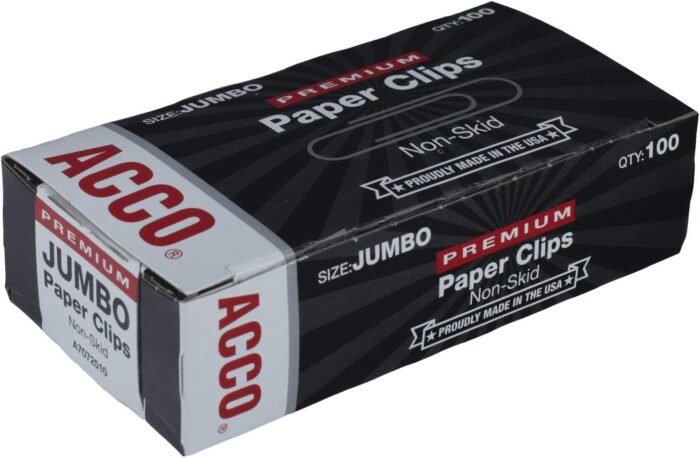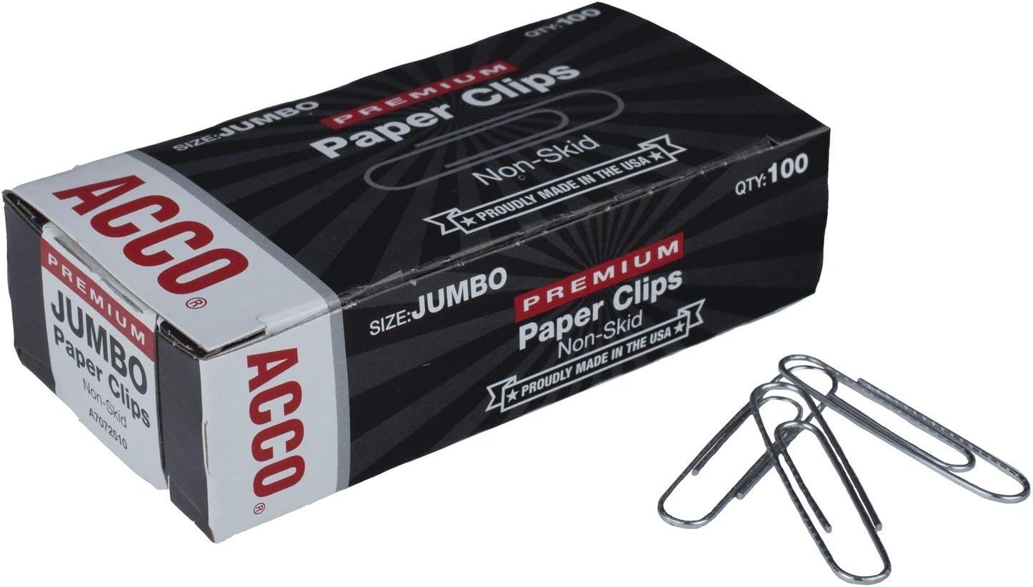 ACCO Economy Smooth Finish Jumbo Paper Clips are available in single box of 100 clips. They feature a standard size, .033 gauge zinc-galvanized metal design that provides a silver finish along with excellent corrosion resistance. ACCO Economy Jumbo Paper Clips feature a non-skid finish to prevent rips and tears, making them an ideal choice for home, school or office needs. The traditional elliptical shape is great for securely holding up to 20 sheets of paper at a time. ACCO combines quality, style and innovation to become your total resource for accounting and storage supplies.