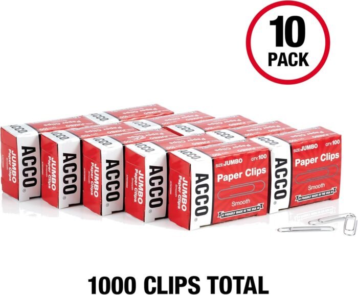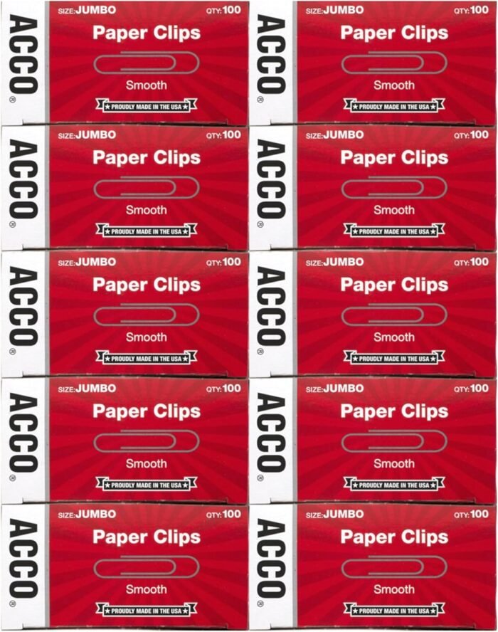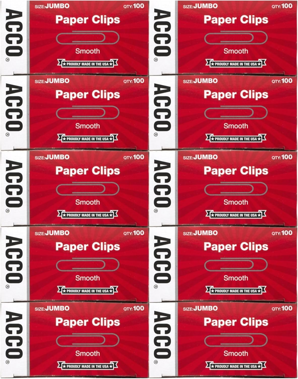 These smooth jumbo paper clips are exactly what you’d expect. They work perfectly for their purpose. They are not too stiff and not too weak. Just right.I received the 10 boxes of 100 clips each as ordered with no problem. That may be a lifetime supply for my one person office but I was totally out of paper clips, the price was right and the extra boxes don’t take up much room in storage.I probably won’t need to come back to re-order but if I needed to, I would! Highly recommended.