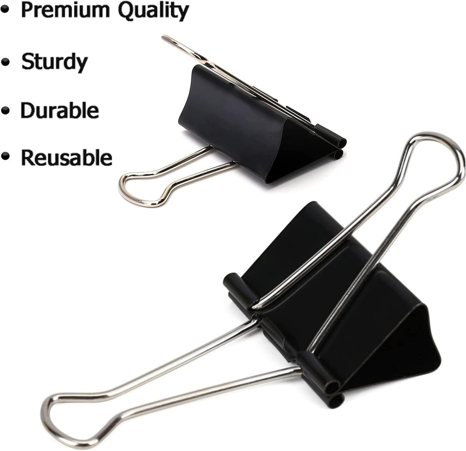 Our binder clips are made of tempered steel, sturdy and strong to use, Assembled with steel arms, the clips provide an extra strong grip for your documents.