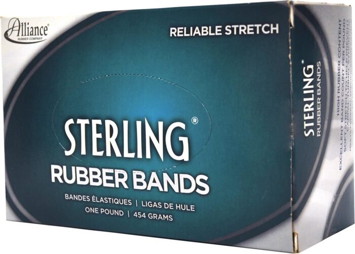 Alliance Sterling Bands are our best value rubber band. These bands feature a high rubber content, which means they are lighter, stretchier and more durable. You receive more bands per pound and can drop back a size for even more cost savings. With a soft stretch and an ultimate elongation at 750%, Sterling elastic bands are ideal for many different environments and tasks.