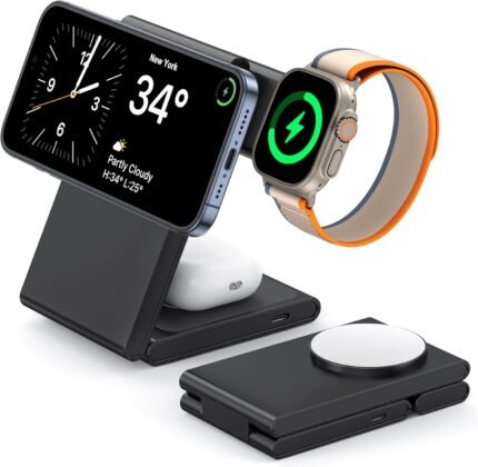 3 in 1 Wireless Charging Station for Multiple Devices, Fast Foldable Travel Mag-Safe Stand for iPhone 16/15/14/13/12/Series, Magnetic Charger for Apple Watch 10/Ultra 2/AirPods 4 with 20W Adapter | ā Art Stationers Best Choice