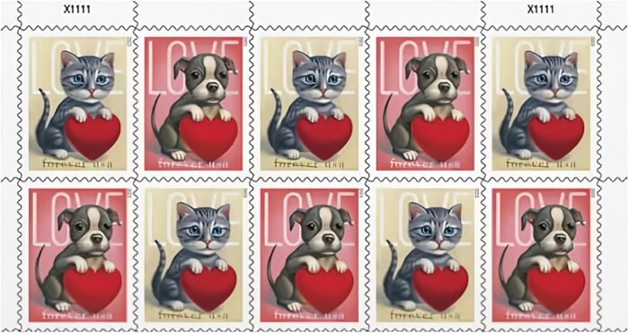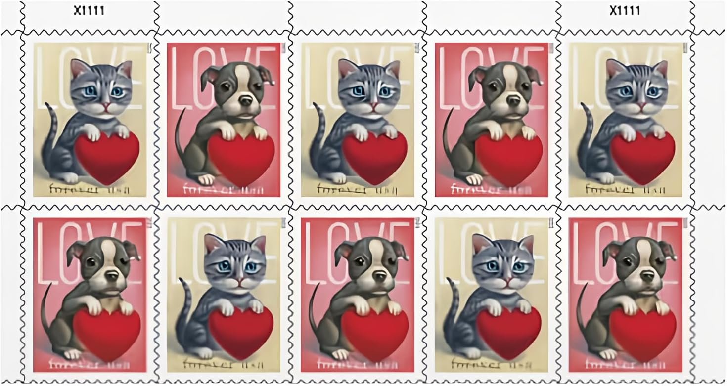 The U.S. Postal Service continues its popular Love series with two new stamps, one featuring a kitten and the other a puppy.